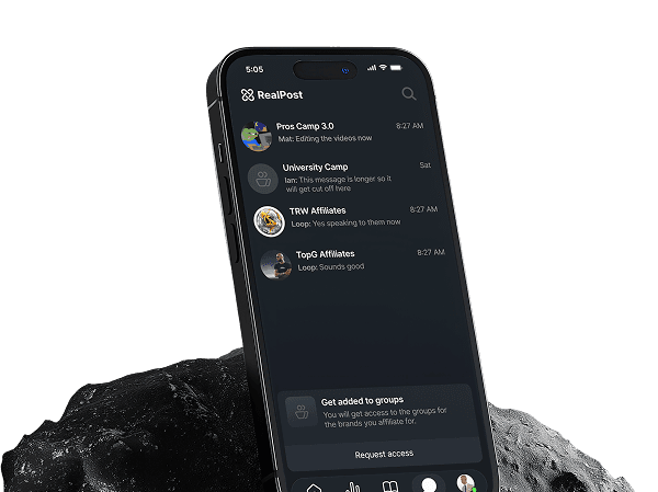 RealPost is a proven app with its own expert affiliate team. Already trained, already posting daily, already driving sales. You bring the raw clips. Our people professionally edit and distribute them to the world.